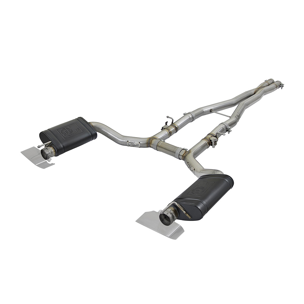 The MACH Force-Xp cat-back exhaust system for the Dodge Challenger SRT Hellcat & Demon is constructed from 3″ mandrel-bent 304 stainless-steel and is MIG welded. The system uses dual high-flow mufflers with 3″ tubing which improves performance across the power band while maintaining the true muscle car sound. aFe POWER has incorporated a crossover balance tube to equalize and evenly distribute exhaust pulses traveling through the exhaust system. This not only creates a more efficient flow and better performance, but the crossover balance tube also reduces sound decibels minimizing exhaust drone. aFe POWER has designed this system to retain your factory exhaust tips. This exhaust uses all factory hanger locations for a hassle free installation. No modifications necessary.